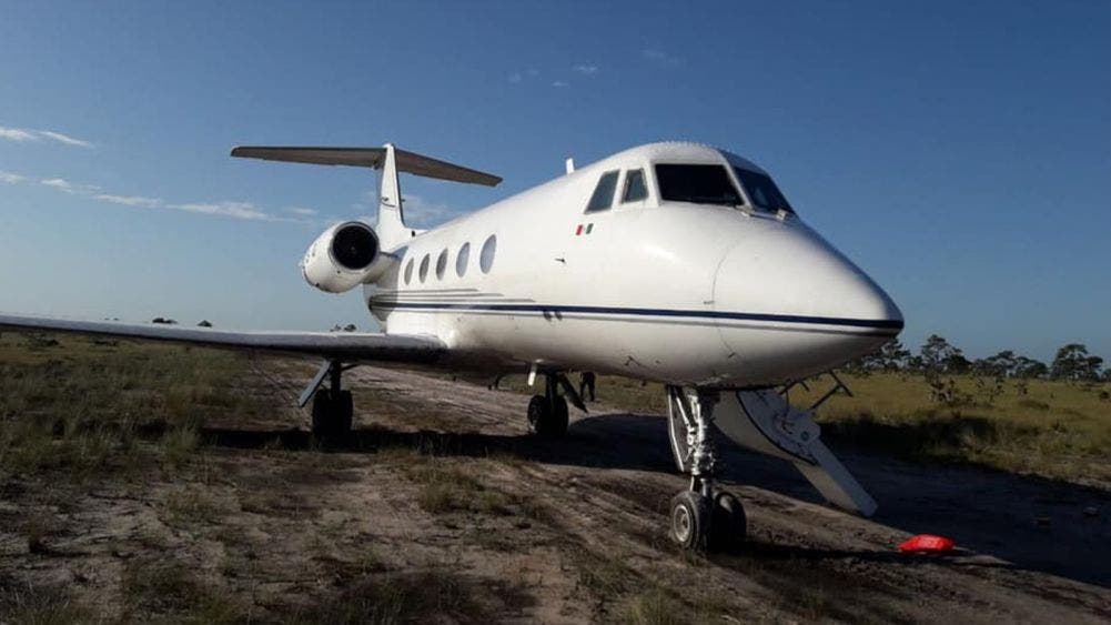 La madrugada de ayer el Ejército y la Policía de Belice aseguraron un jet tipo Hawker Sidley, con matrícula HS-125, entre las aldeas de Crooked Tree y Shipyard.