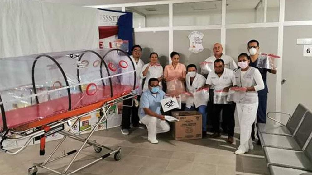 Familiares del personal médico de la clínica del ISSSTE en Chetumal, elaboran de manera voluntaria y altruista, equipo especial, principalmente caretas y cápsulas de traslado para atender casos de esta enfermedad.