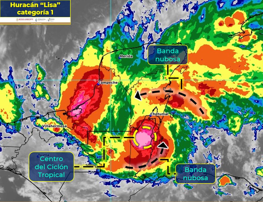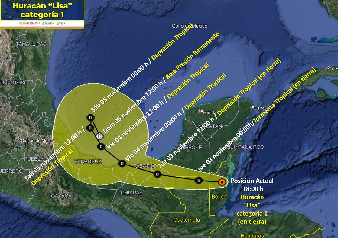 El Sistema Meteorológico Nacional (SMN), en su más reciente aviso de las 18:15 horas (seis de la tarde con 15 minutos), detalló que el centro del huracán «Lisa» se ubicaba sobre tierra en territorio de Belice