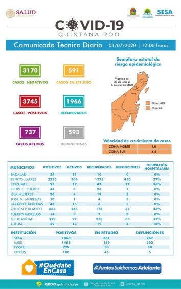 Esto es grave si se toma en cuenta que Othón P. Blanco es un municipio con menor población que Solidaridad en donde hay 550 casos positivos y solo 92 activos.
