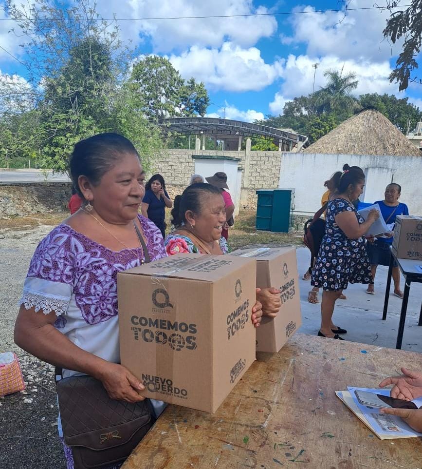 La gobernadora Mara Lezama recordó que quienes resulten beneficiados con el programa Comemos todas y todos recibirán una despensa con productos de la canasta básica y al siguiente mes se les depositará mil 350 pesos mensuales para que puedan adquirir alimentos, medicinas y útiles escolares.