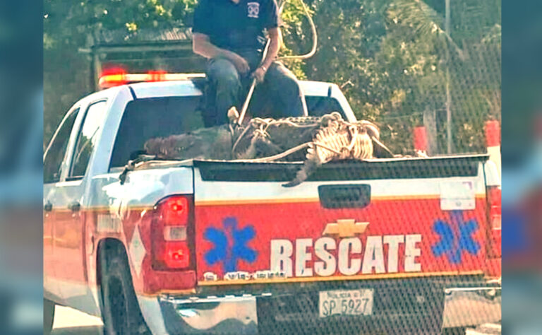 Los encargados de realizar la captura, fueron los elementos del Heroico Cuerpo de Bomberos, pues al ser una especie actualmente protegida, no se le podía capturar directamente.