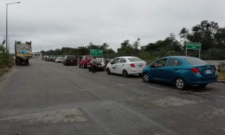 Largas filas de automovilistas para ingresar a la Zona Libre de Belice.