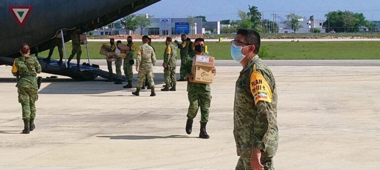 Este lunes un avión de la Fuerza Aérea Mexicana (FAM) llegó a Chetumal con 7.3 toneladas de medicamentos, insumos y equipamiento para los hospitales de Zona e Insabi COVID-19 Número 27, ambos con sede en Chetumal.