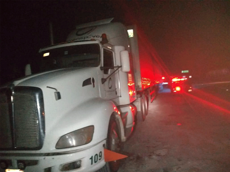El tractocamión estaba acoplado, con “dolly”, a un semirremolque y remolque, pero ya sin carga.