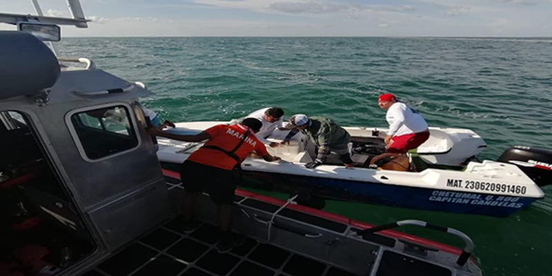 Horas más tarde, se recibió un nuevo reporte por parte de la Capitanía de Puerto de Chetumal sobre una embarcación menor tipo IMEMSA de nombre “CAPITÁN CANDELAS” que se encontraba a la deriva por presentar falla en el motor de arranque a tres millas náuticas (5.55 kilómetros) aproximadamente al este de la Isla Tamalcab, siendo cuatro tripulantes de nacionalidad mexicana rescatados y concentrados, de igual manera, al muelle de la Administración Portuaria Integral de Quintana Roo.