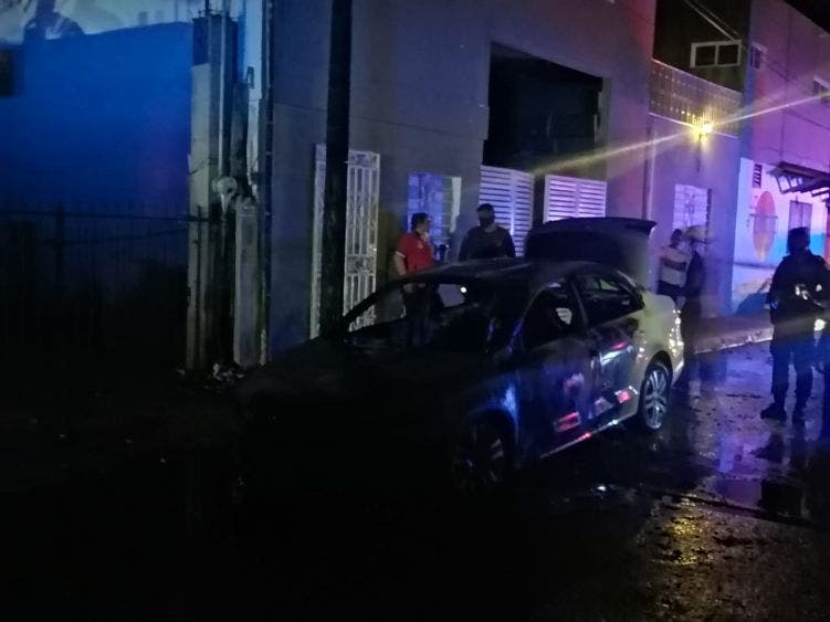 Pirómanos motorizados incendian vehículo en Chetumal.- Un vehículo fue incendiado de manera intencional en la Colonia Solidaridad de Chetumal la madrugada de este domingo.