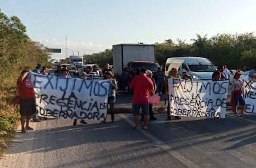 Desesperados porque la situación ya se ha vuelto crítica según afirman, los habitantes de esta población situada a unos 180 kilómetros al sur de Chetumal, la capital del estado, decidieron bloquear la arteria federal.