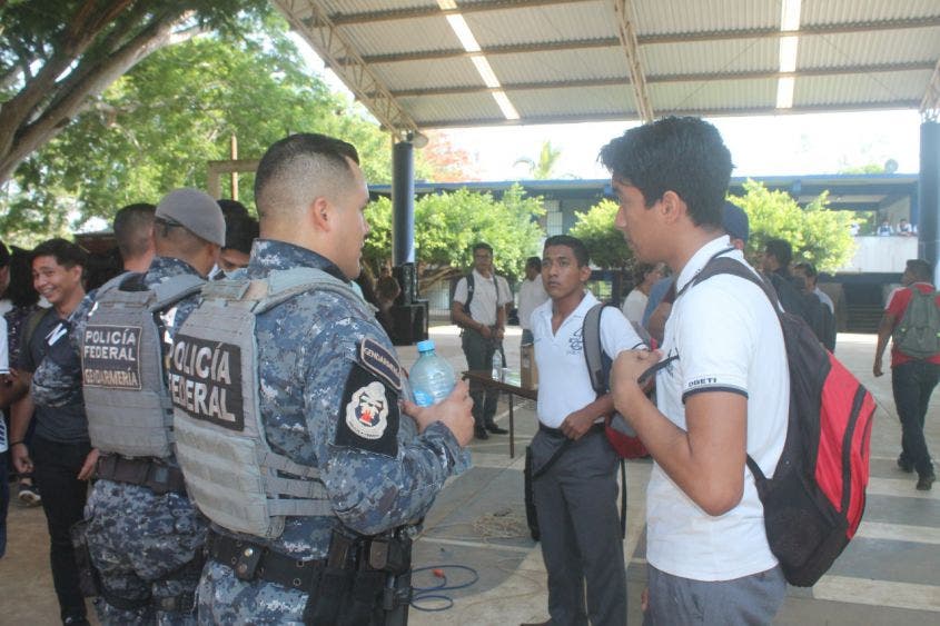 Un contingente de elementos de la GN inició con pláticas y concienciación entre estudiantes de las secundarias “Othón P. Blanco” y “Armando Escobar Nava”, donde permanecieron por varias horas.