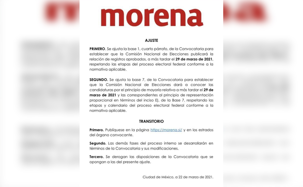 La Comisión Nacional de Elecciones de MORENA deberá publicar tanto en la página https://morena.si/ así como también en los estrados de ese órgano.