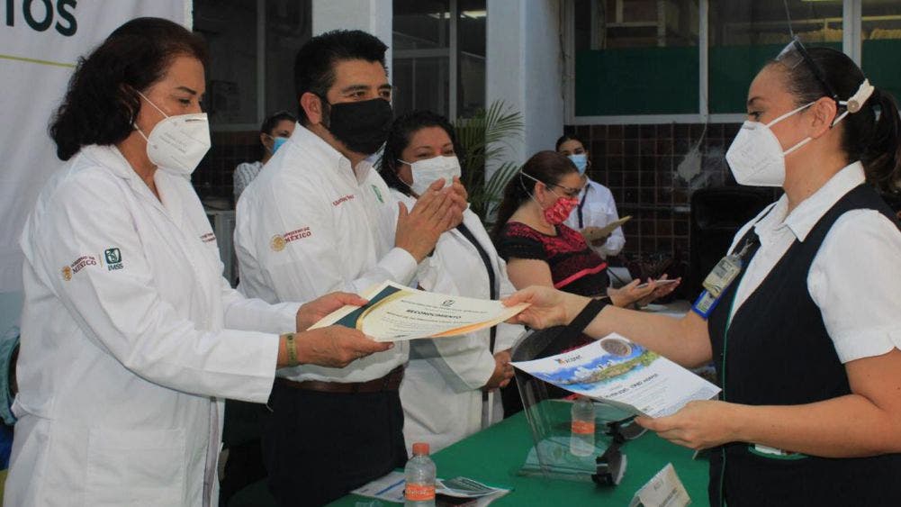 Romero Guerrero agradeció al Grupo Xcaret, representado por Iliana Rodríguez Cavazos, quien hizo entrega de reconocimientos a cada de uno de los trabajadores del HGZ No. 3, por su desempeño profesional en la recuperación de pacientes infectados del virus SARS-CoV-2, que consiste en un pase de cortesía para dos personas para asistir al parque ubicado en la Riviera Maya.