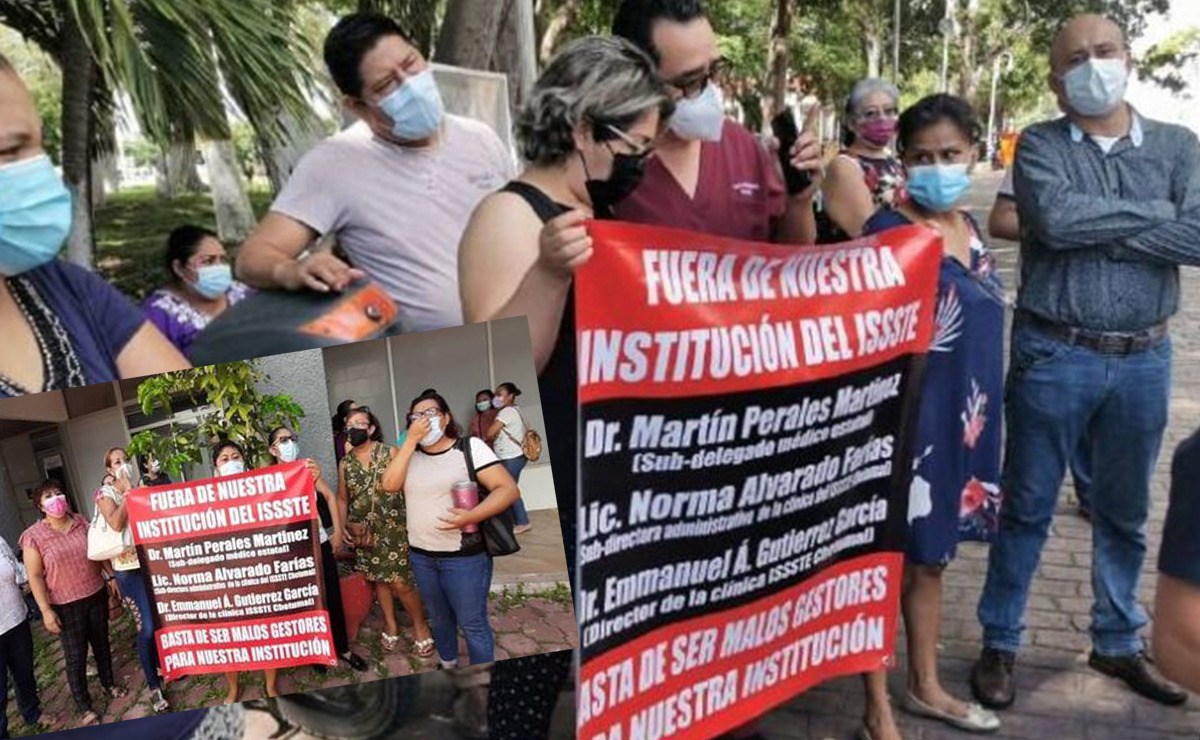 A la ola de manifestaciones el día de hoy en la capital del estado, se sumó la de los empleados del Instituto de Salud y Seguridad Social de Trabajadores sindicalizados del Estado (ISSSTE), personal médico que pancartas en mano se manifestaron frente a la delegación en Chetumal y pidieron el cese de varios funcionarios.