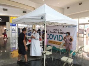 Este domingo, la Secretaría Estatal de Salud habilitó módulos para la aplicación de pruebas rápidas de detección de Covid-19 a personas que presentan síntomas de la enfermedad, como tos, fiebre y dolor de cabeza, en un horario de las 8:00 de la mañana a las 12:00 del mediodía.
