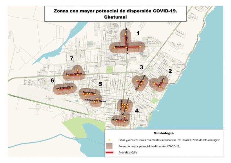 De acuerdo con el geoportal de Covid-19, vigente hasta el domingo 19 de julio, Chetumal tiene ahora tres colonias como epicentros de contagios de esta enfermedad.
