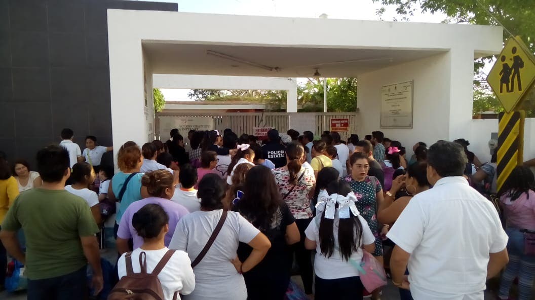 En protesta a los recurrentes robos, toman padres de familia las instalaciones de la primaria “Benito Juárez” en Chetumal.