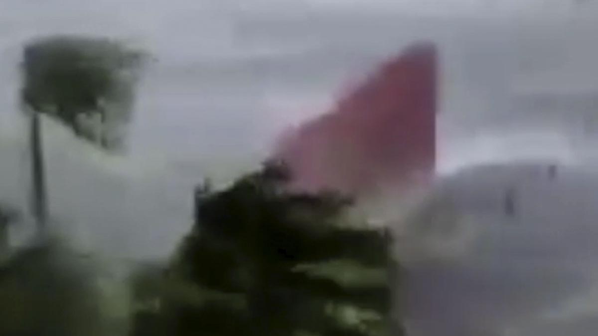 Usuarios de las redes sociales subieron ya videos en los que se muestra como las rachas de vientos azotan las costas del país frontera con el estado de Quintana Roo en México, arrastrando tejados de casas que flotan en las aguas.