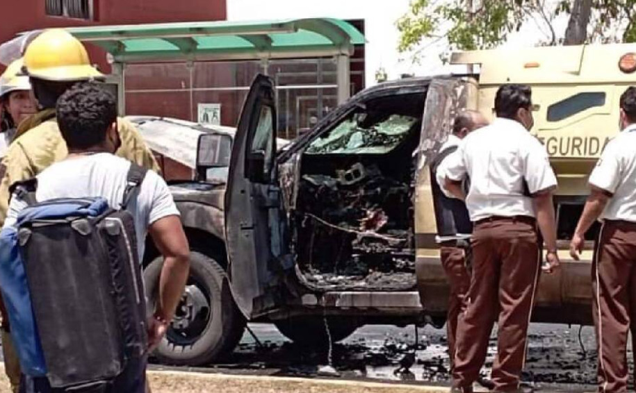 Al lugar se presentó una unidad del Heroico Cuerpo de Bomberos de Chetumal, quienes lograron sofocar el incendio del pesado camión, el cual quedó totalmente consumido en su parte delantera.