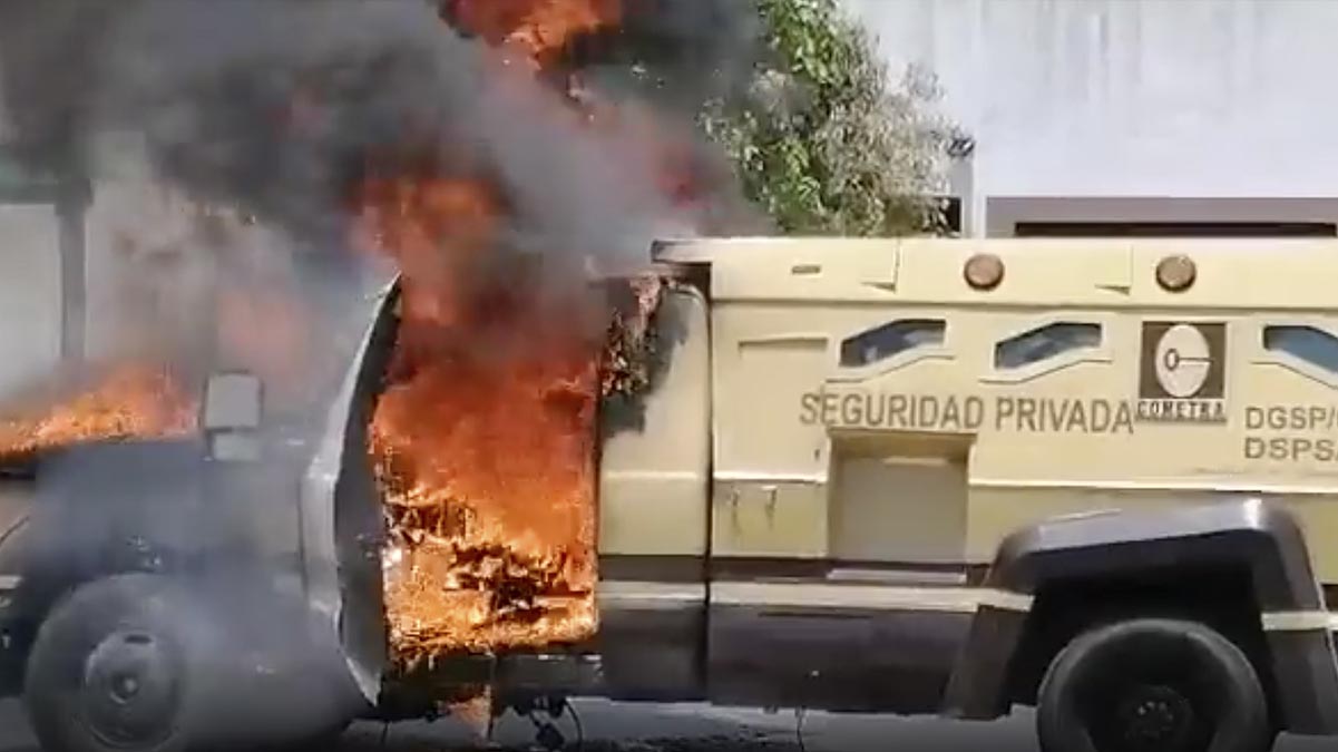 El incidente de esta tarde de jueves que de nueva cuenta involucra a Cometra, ocurrió cuando uno de sus camiones de traslado de valores estalló en llamas en pleno Centro de la capital de Quintana Roo, presuntamente por un corto circuito.