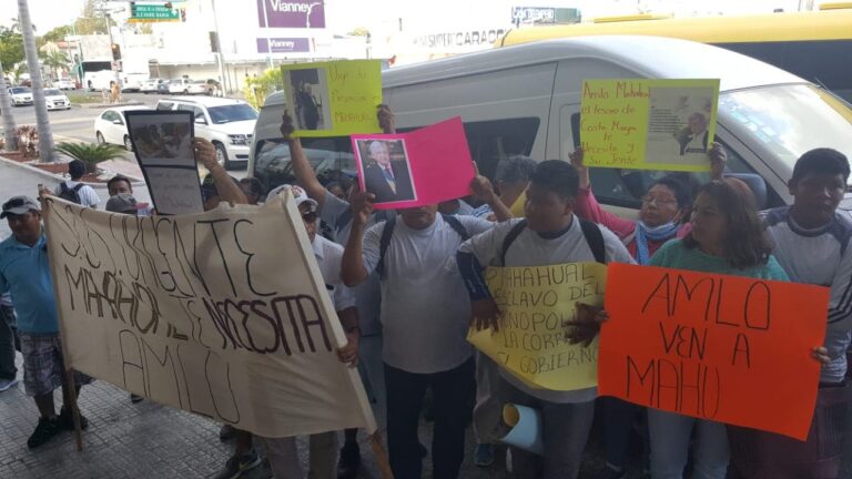 Manifestantes piden que AMLO vaya a Mahahual
