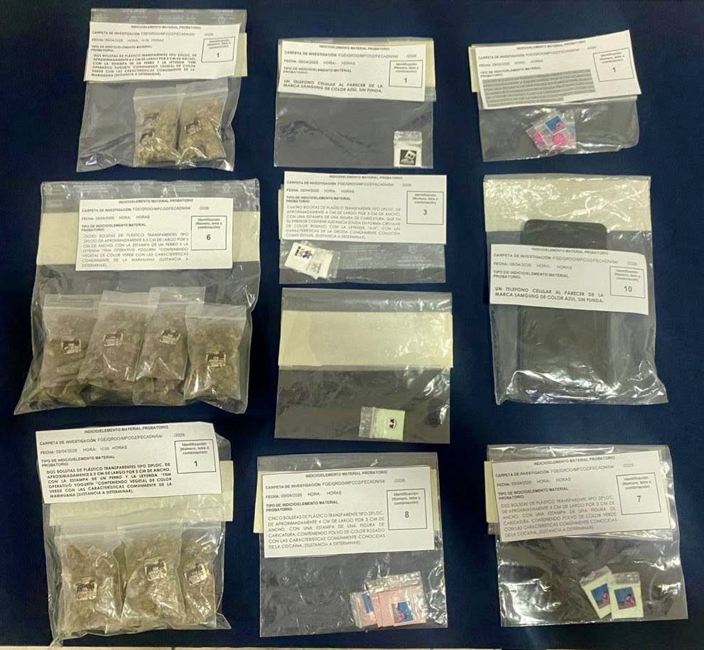 Aunque intentaron huir, ambos fueron alcanzados a corta distancia. Durante la inspección, los agentes aseguraron más bolsitas con hierba seca con características similares a la marihuana, así como otras que contenían sustancias en polvo de distintos colores, que preliminarmente coinciden con características de la cocaína.
