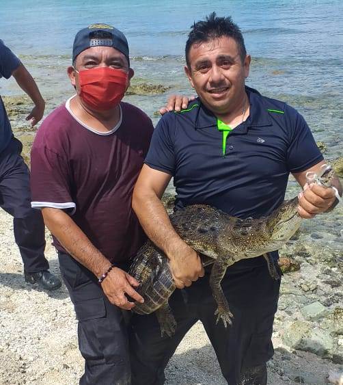 Elementos del Cuerpo de Bomberos de Cozumel atendieron el reporte de un cocodrilo que merodeaba por la zona costera sur de la isla, quienes acudieron hasta el lugar señalado para proceder con su captura.