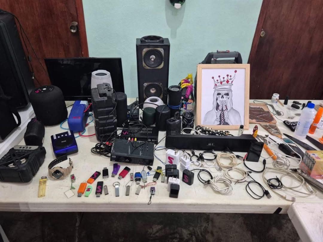 Como resultado del cateo a las celdas de los presos, se decomisaron una serie de objetos prohibidos de diversa naturaleza, entre los que se hallaron dos refrigeradores de 11 pies, un mini celular sin marca, un horno de microondas, dos parrillas hechizas, 35 encendedores, una calculadora, tres relojes, 23 bocinas de diversos tamaños, 19 usbs, siete cargadores de teléfono celular con sus cables, un cuadro de la santa muerte, dos decodificadores para televisor, y un televisor de 14 pulgadas.