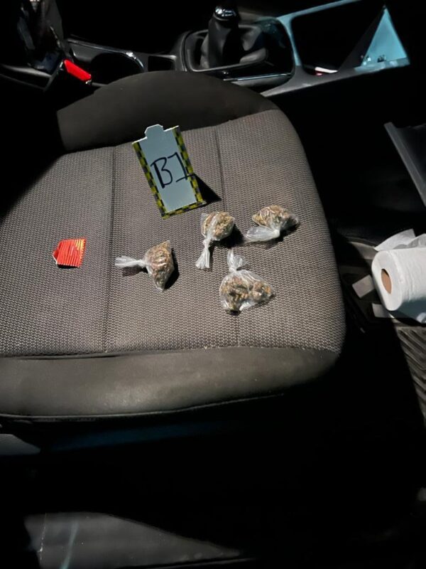Posteriormente, en la colonia Adolfo López Mateos, tras el cateo fueron asegurados dos automóviles con placas de otros estados del país, así como material sintético transparente que en su interior contenían hierba seca, con características de la marihuana.