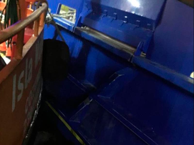 El Personal de ambos naves se gritaban para coordinarse y poder separar las embarcaciones, sin generar más daños, ya que producto del Frente Frío, en la isla se han padecido fuertes vientos y oleaje.