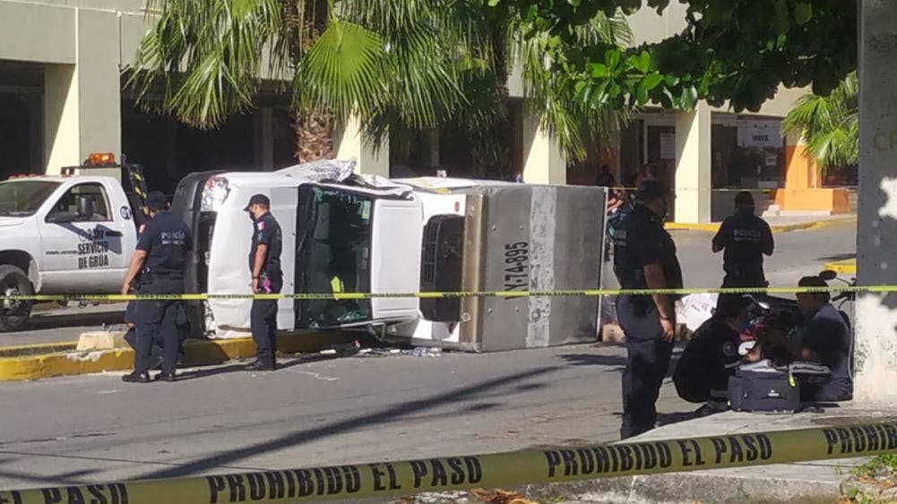 Como parte de los protocolos que siguen, los agentes de la Policía Quintana Roo procedieron a acordonar la zona del percance, donde también se esperaba la presencia de los bomberos para regresar el camión a su posición normal.