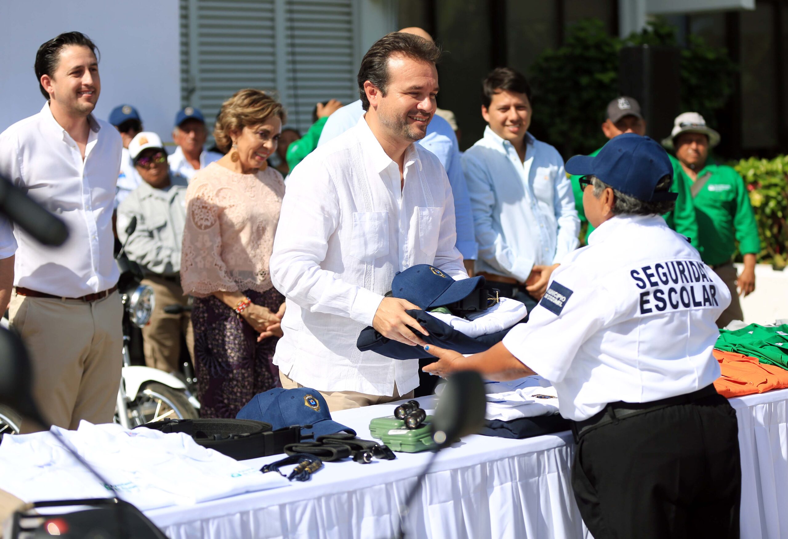 Entrega Presiden de Cozumel vehículos y uniformes de trabajo
