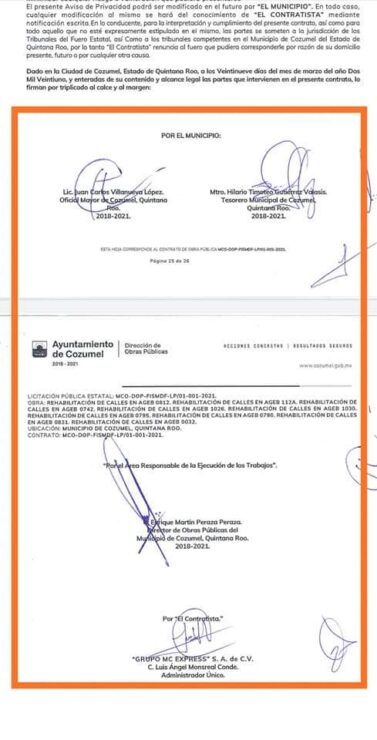 En esta obra se invertirá supuestamente 10 millones 671 mil 492 pesos con 12 centavos, que es dinero de todos los cozumeleños, de los cuales para inicio de obra se dio un anticipó del 30 por ciento que son 3 millones 201 mil 447 pesos con 64 centavos, dinero del pueblo y de cada uno de los cozumeleños que podría estarse desviando para la campaña de algún político, y para la compra del voto, pago de lideresas, pago de credenciales y otros gastos de campaña.