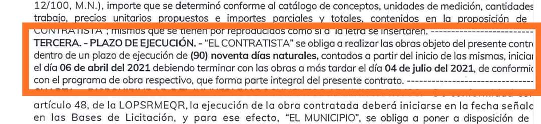 Según el contrato de la remodelación de la 65 Avenida, con número MCO-DOP-FISMDF-LP/01-001-2021, la obra la realizará la empresa GRUPO MC EXPRESS, S.A. DE C.V., la cual debió iniciar el 6 de abril de 2021 para finalizar el próximo 4 de julio de este año; sin embargo, la obra no ha iniciado y no se ve para cuándo esta obra inicie. (Las obra no se suspenden en tiempos electorales, véase continúan obras de guarniciones).