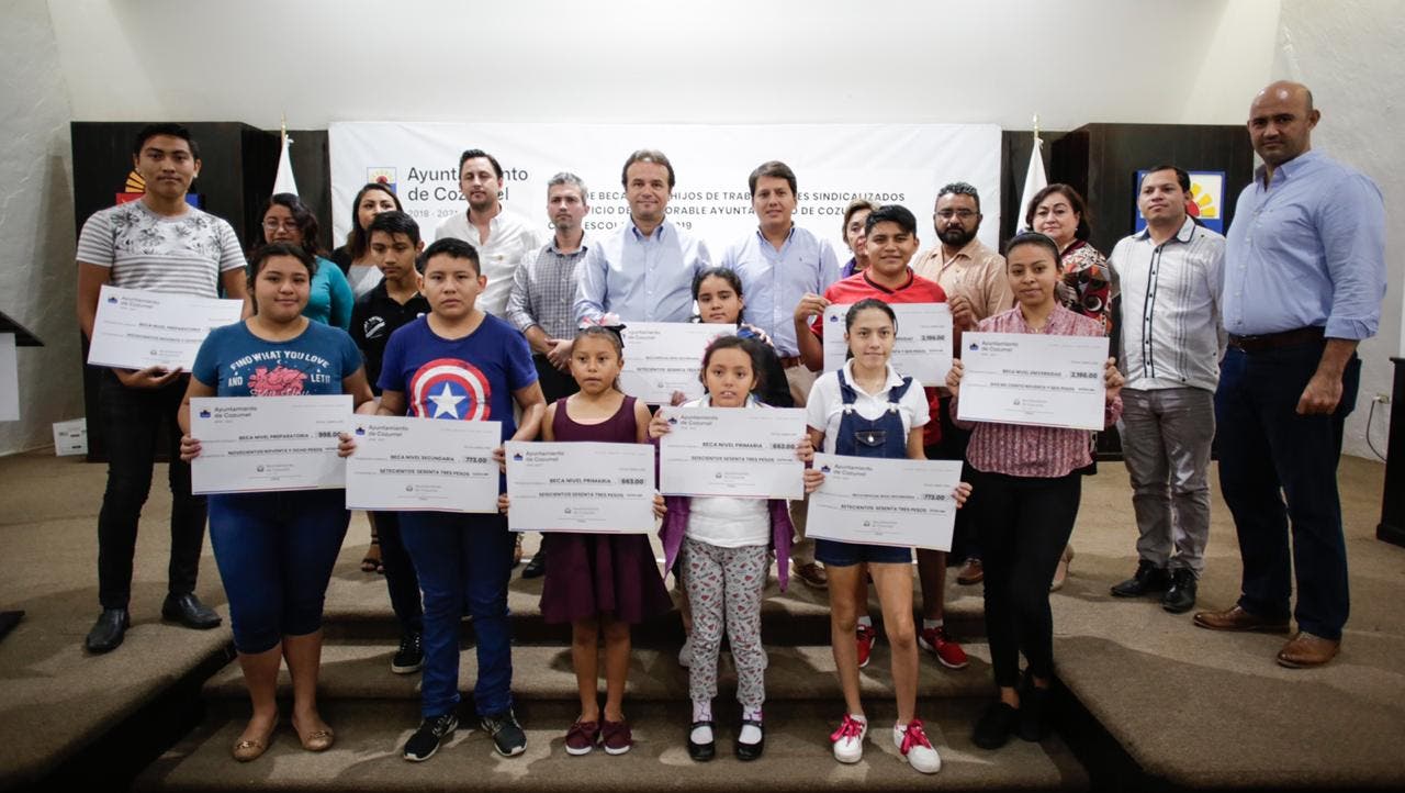 Cozumel, Quintana Roo.- Con el fin de incentivar e impulsar a niñas, niños y jóvenes a continuar sus estudios y mantener un buen nivel de aprovechamiento, el Presidente Municipal de Cozumel, Pedro Joaquín Delbouis, cumplió con el pago de 207 “Becas escolares para hijos de trabajadores sindicalizados al servicio del Ayuntamiento de Cozumel”, por un monto total de 228 mil 342 pesos, provenientes de recursos municipales.