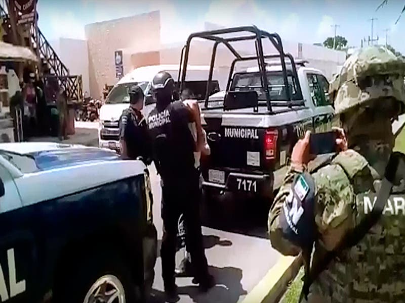 En un operativo conjunto entre la policía Quintana Roo, policía naval, policía militar y personal del departamento de verificación comercial(fiscales)se detuvo a varias personas del sexo masculino que se encontraban al parecer laborando de forma irregular en la zona turística frente a la terminal marítima internacional de puerta maya.