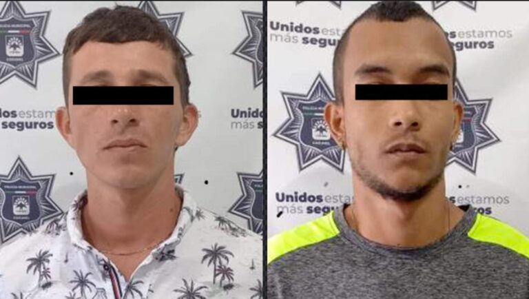 Elementos de la Dirección de Seguridad Pública y Tránsito que realizaban recorrido de prevención, vigilancia y disuasión del delito por el bulevar Aeropuerto de Cozumel, detuvieron a dos colombianos por delitos contra la salud.