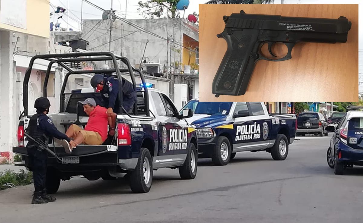 Como resultado de la rápida respuesta a una denuncia ciudadana, elementos de la Policía Quintana Roo de Cozumel de la Policía Ministerial lograron detener a un hombre por la presunta portación de arma prohibida, por lo que fue puesto a disposición de la Fiscalía General del Estado (FGE) para determinar su situación por el delito antes mencionado.