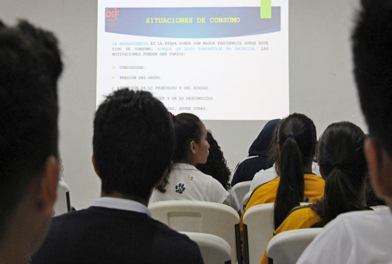 Durante la plática realizada en las instalaciones del Instituto Partenón, el psicólogo Caroll Young Pérez mencionó que la adolescencia es la etapa donde en la mayoría de los casos surge el consumo de sustancias; enfatizando que las motivaciones pueden ser la curiosidad, la presión del grupo, la atracción de lo prohibido, entre otras.