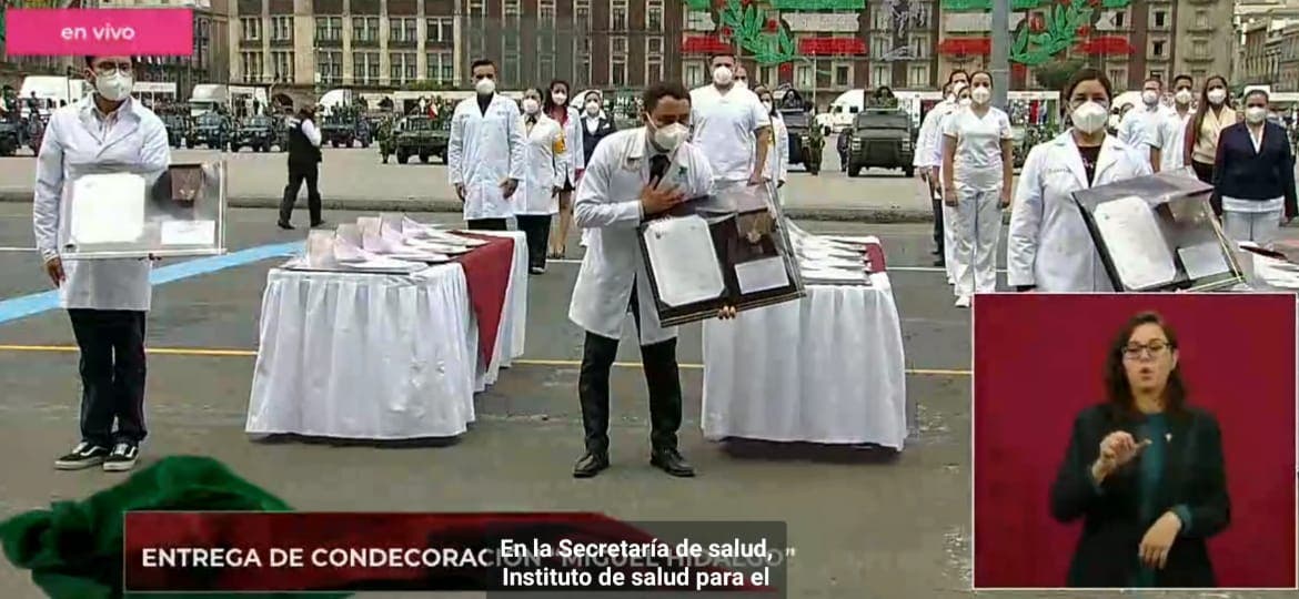 Por ello, el Gobierno de México reconoce la entrega de estos 58 personas del área de la salud dónde en Quintana Roo y por supuesto Cozumel sobre sale la figura del doctor Omar Calderón Palé por su entrega y profesionalismo del personal de salud, quienes han ejercido sus funciones de manera desinteresada y en favor de los mexicanos, por lo que el Titular del Ejecutivo Federal ofreció este más alto reconocimiento que la Nación puede entregar a sus nacionales que es la Condecoración Miguel Hidalgo en su grado de Collar.