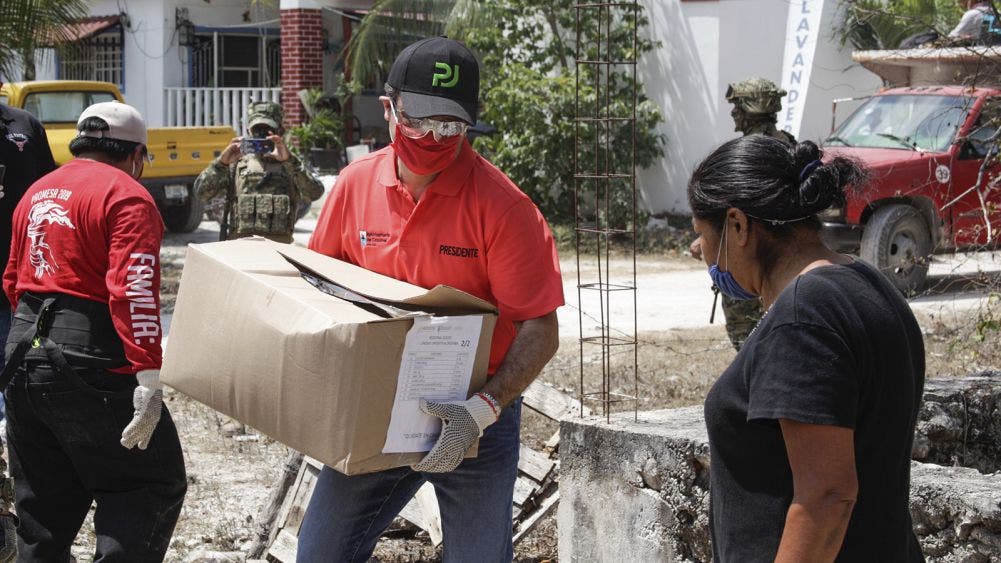 Agradece el Presidente Municipal el apoyo del personal del Ayuntamiento de Cozumel y del Gobierno del Estado, así como de las Fuerzas Armadas, quienes día a día arriesgan su vida en el reparto de despensas y en mantener la seguridad del destino