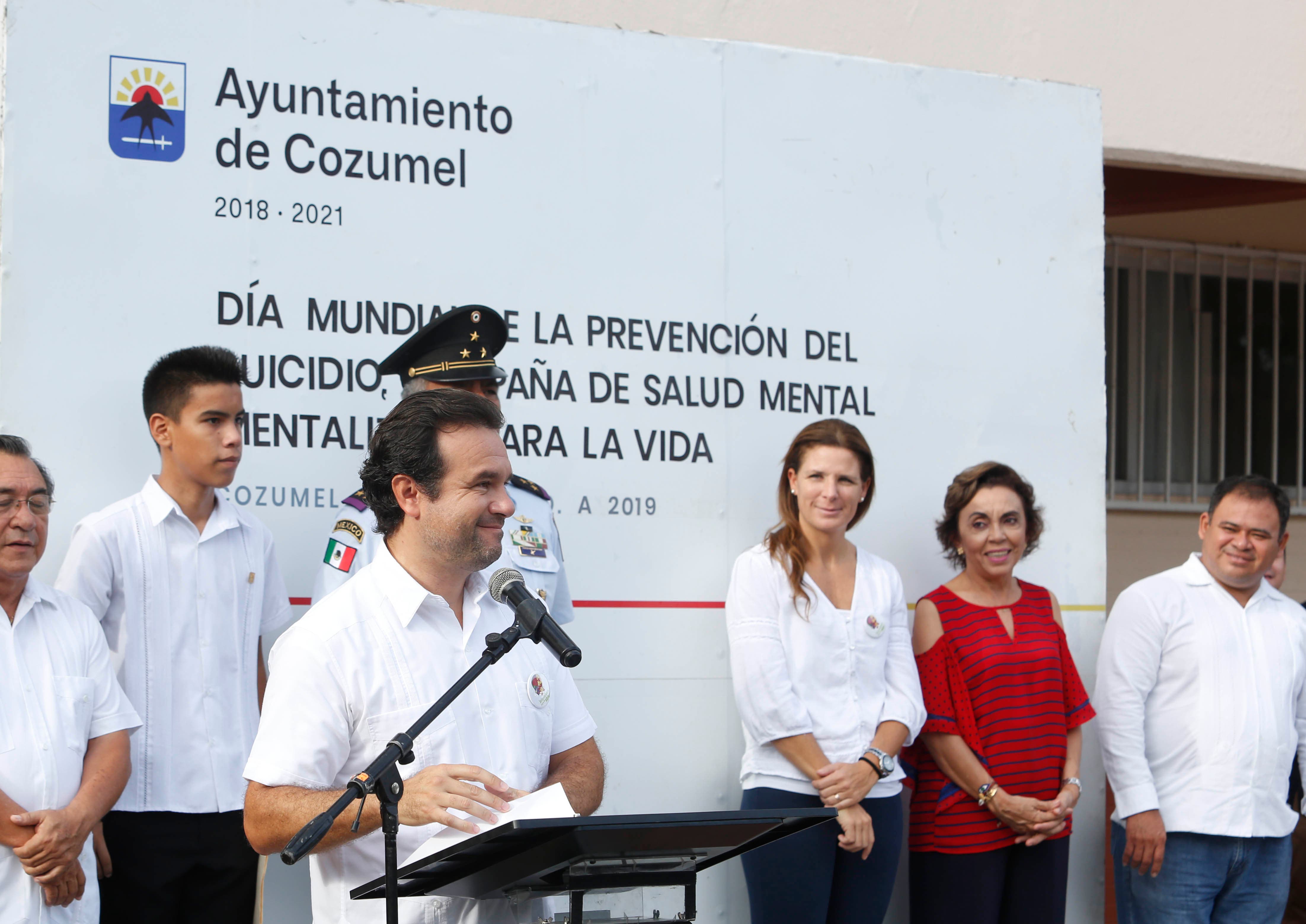 En el marco del Día Mundial para la Prevención del Suicidio, el Presidente Municipal, Pedro Joaquín, acompañado de la Presidenta del Sistema DIF Cozumel, Mary Mar Abad de Joaquín, inauguró la Campaña de Salud Mental «Mentalízate para la Vida».