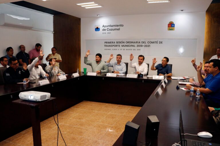 Cozumel, Q. Roo.- El Presidente Municipal, Pedro Joaquín Delbouis, encabezó la Primera Sesión Ordinaria del Comité de Transporte, donde se ratificaron y regularon las rutas vigentes del servicio público del Sindicato de Choferes, Taxistas y Similares “Adolfo López Mateos” y de la empresa de la Unión de Permisionarios de Transportación Urbana de Cozumel S.A de C.V (UNIPER).