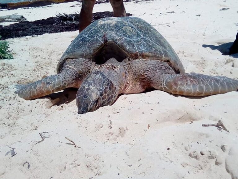Tortuga marina muerta en playa San Martín.