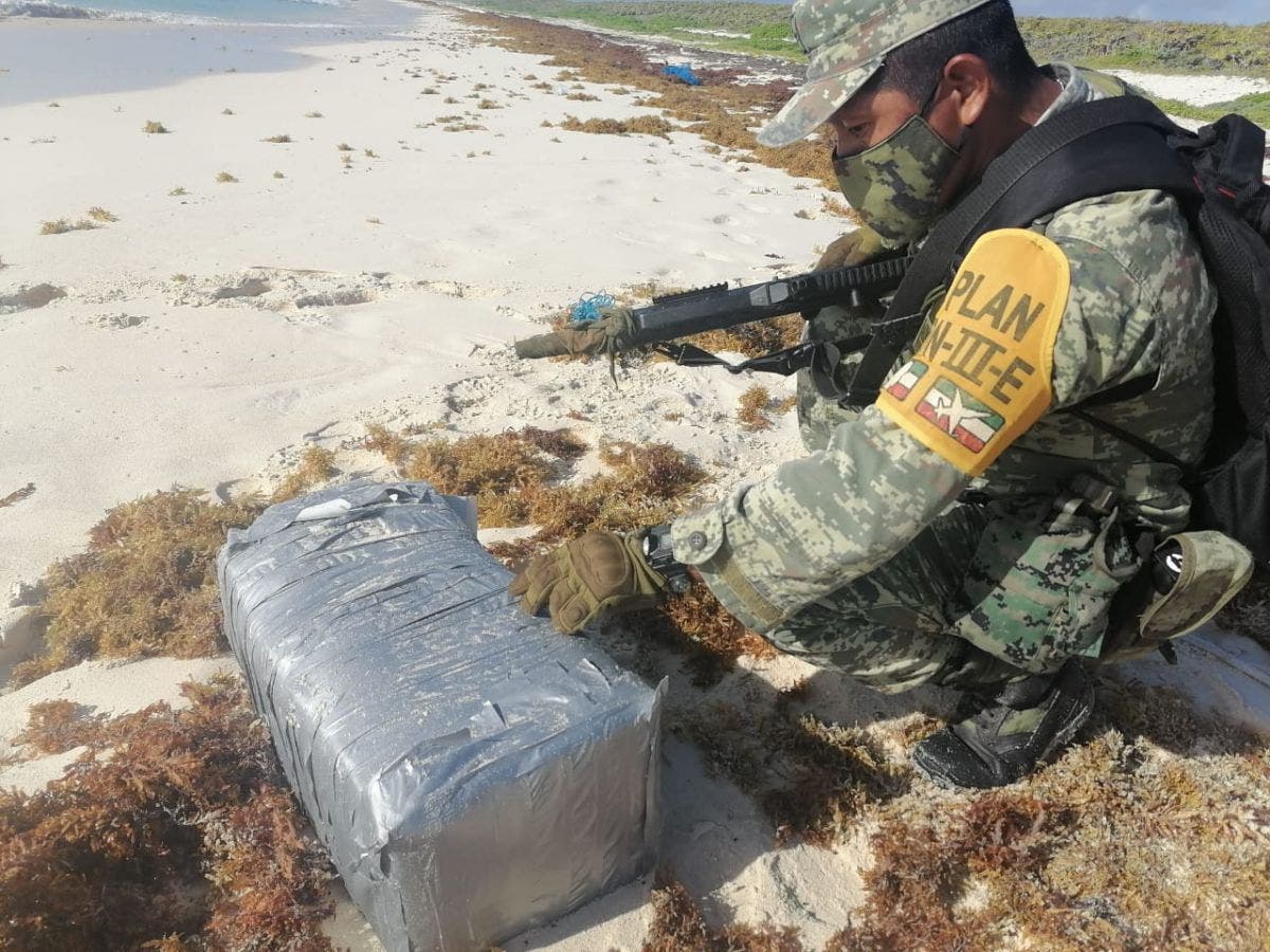 ‘Escupe’ el mar 36 kilos de cocaína en una playa de Cozumel; el decomiso lo realizó personal militar que hacía sus acostumbrados rondines.
