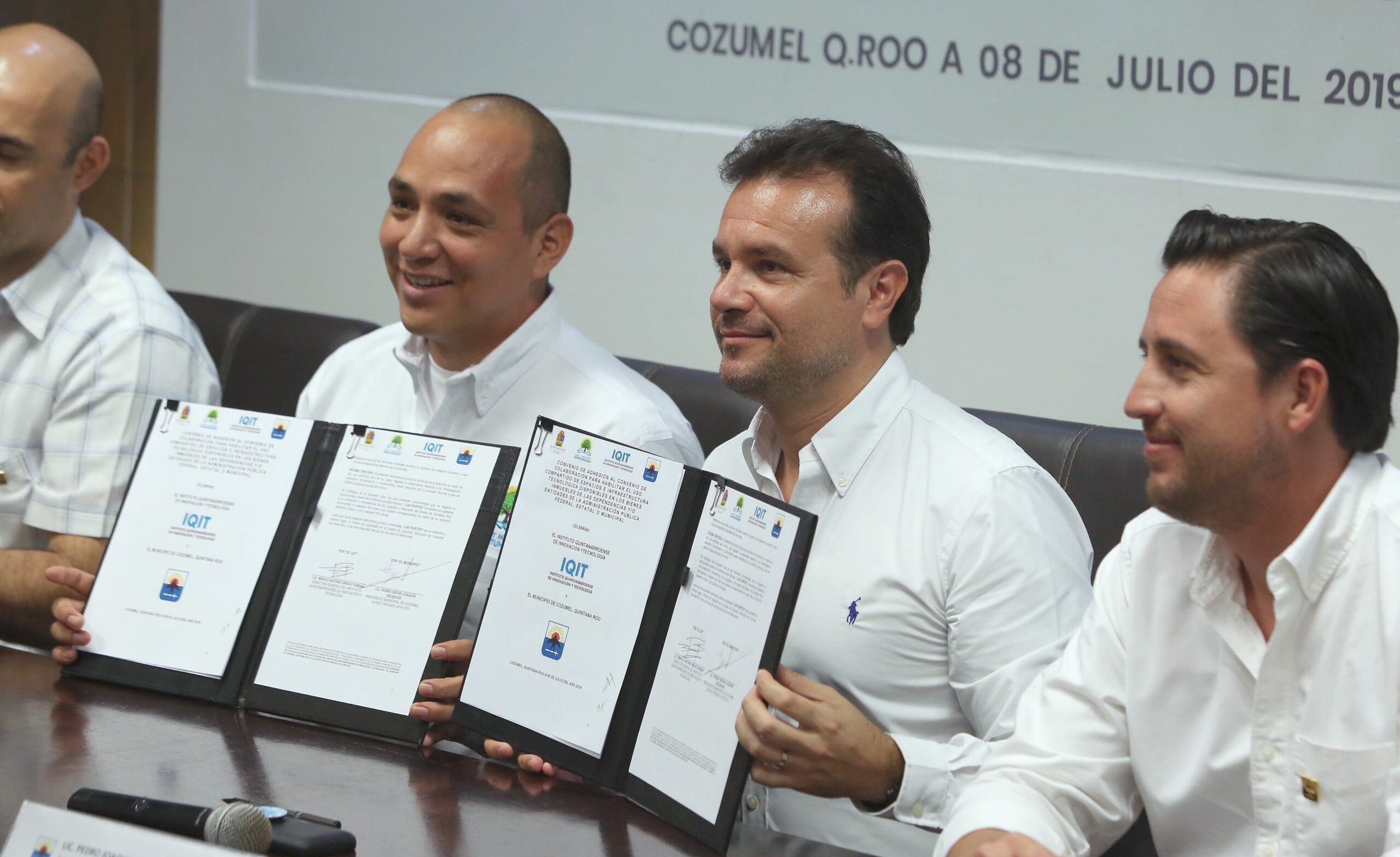 Posteriormente, el Presidente Municipal, Pedro Joaquín, firmó el Convenio de Colaboración para Habilitar el Uso Compartido de Espacios e Infraestructura Tecnológica, con el Instituto Quintanarroense de Innovación y Tecnología, en el que Cozumel es el primer municipio que formaliza ese acuerdo para llevar la conectividad a las áreas donde se necesita.