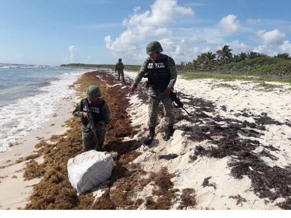 Personal de la Sedena realiza recorridos diariamente por la costa oriente de la isla, a fin de ubicar los paquetes con droga, los cuales después de ser debidamente resguardados son entregados a la Fiscalía General de la República (FGR).