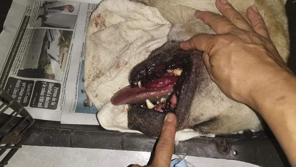 En la clínica han señalado que la vida del perro no corre peligro sin embargo su situación es delicada ya que perdió varios dientes así como también salió muy lastimada su lengua y hocico.