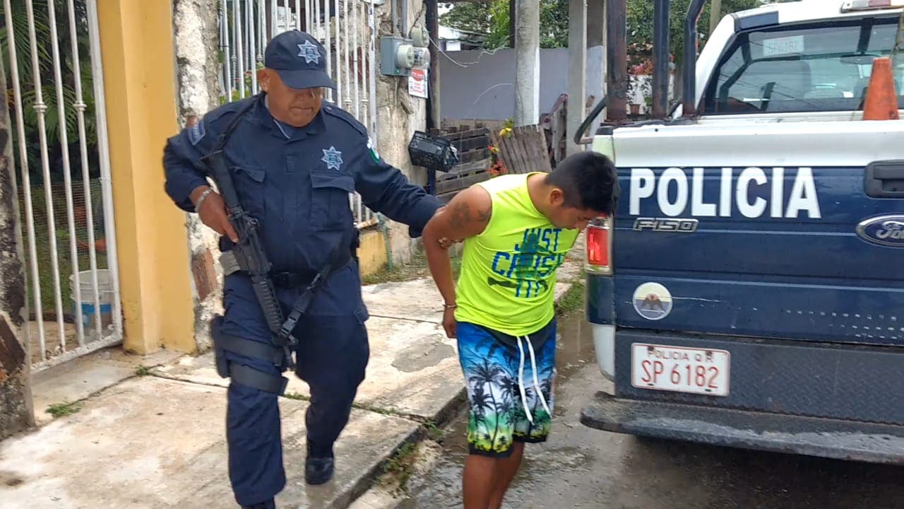 En el lugar, elementos de la policía detuvieron a Juan Carlos P.N. de 28 años de edad quien al parecer lesiono con arma blanca (cuchillo) en el antebrazo y estomago a su esposa de 26 años de edad de nombre Paulina Liseth S.M.