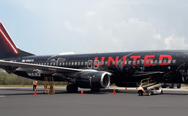 La Fuerza llega a Cozumel, en avión de Star Wars, el día de hoy, el avión inspirado en esta saga cinematográfica, de la aerolínea United Airlines llegó Cozumel y de hecho, puedes volar en él e incluso hasta rastrear sus rutas en línea.