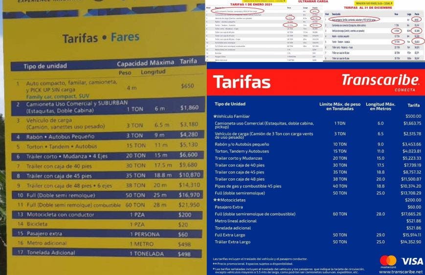 Hasta el día 31 de diciembre de 2020 la tarifa de un camión de 3 toneladas era de 2,396, este 1 de enero pagaron 3,180 pesos. Un camión de 15 toneladas pagó el 31 de diciembre 3,833 pesos, y éste 1 de enero pagó 5,130 pesos. Mientras que en los camiones más grandes las tarifas variaron más de 2,529 pesos.
