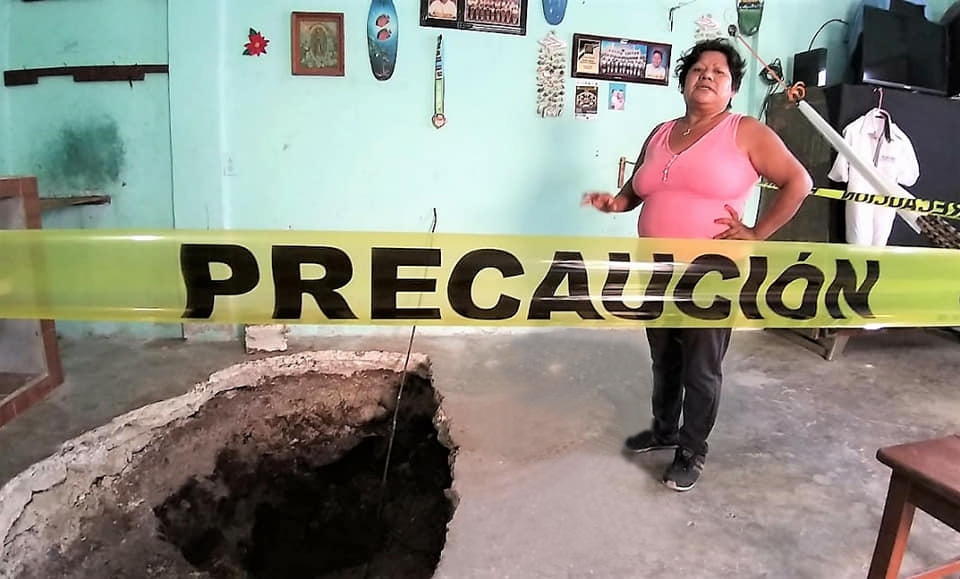 La tarde de ayer una ama de casa en la colonia San Gervasio de la isla de Cozumel, descubrió con sorpresa la existencia de un presunto cenote ubicado debajo de la sala de su propia casa, ahora el socavón amenaza con engullir su domicilio.